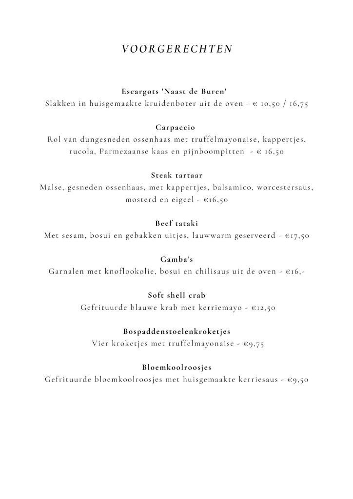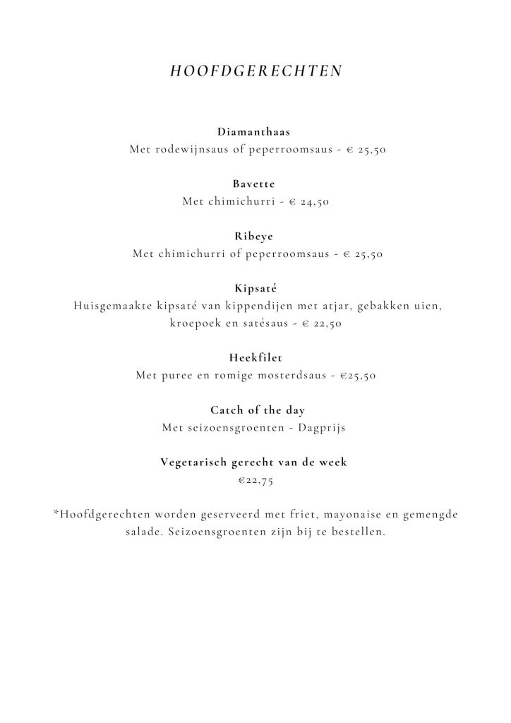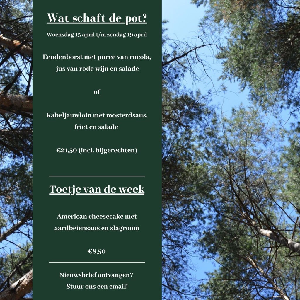 U bent van harte welkom om te komen genieten van onze voortreffelijke à la carte menukaart of het wekelijks wisselende ‘Wat schaft de pot’-menu.