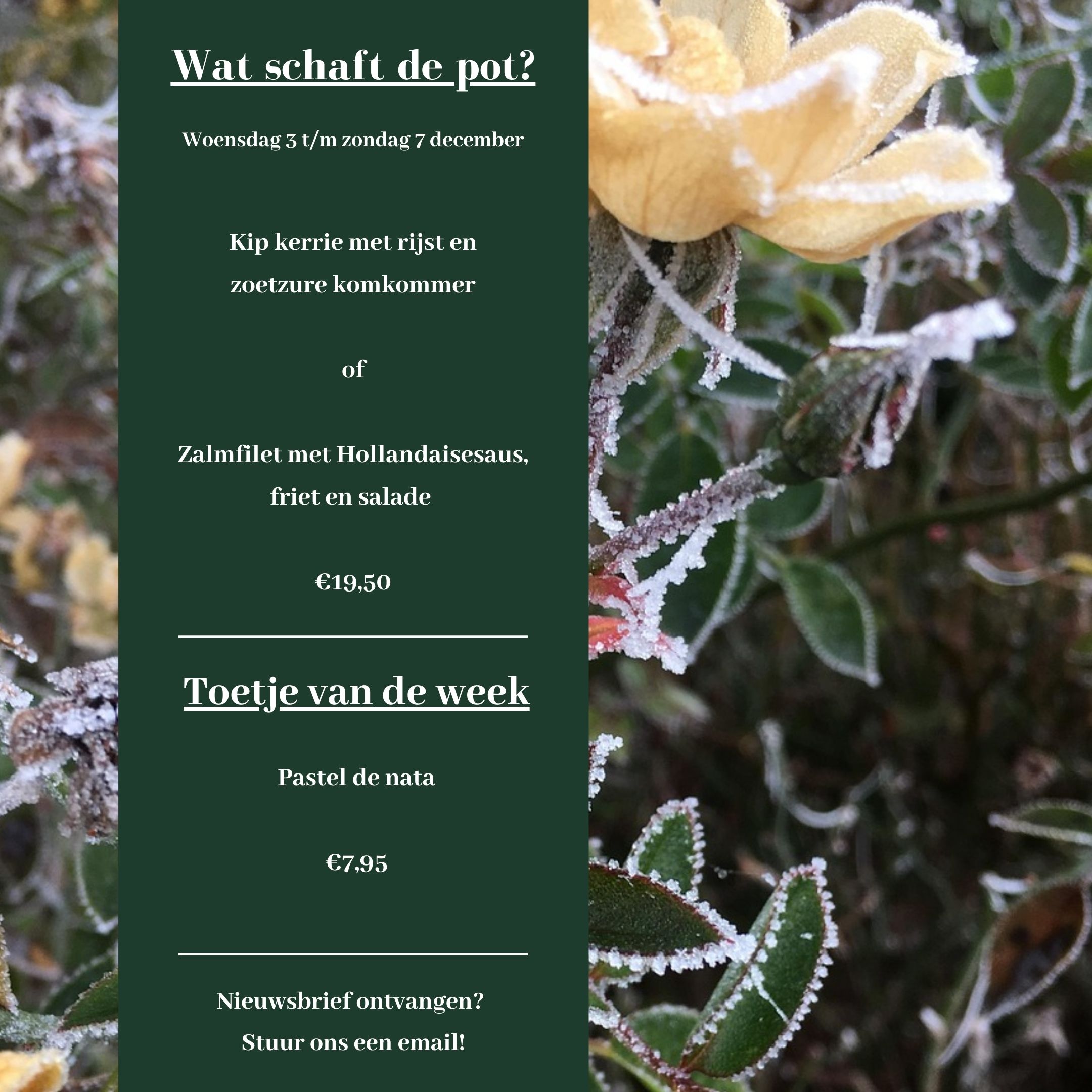 Van woensdag t/m zondag serveren wij “Wat schaft de pot?” naast onze à la carte menukaart.